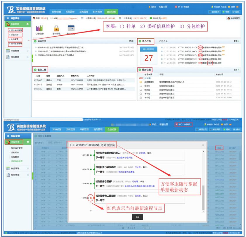 ——委托信息維護(項目方法信息維護),報告發(fā)放管理(報告快遞信息記錄)。