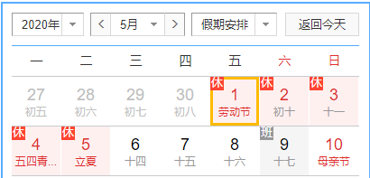 2019年11月21日,國務(wù)院辦公廳發(fā)布2020年節(jié)假日安排的通知,其中五一勞動節(jié)5月1日至5日放假調(diào)休,共5天。